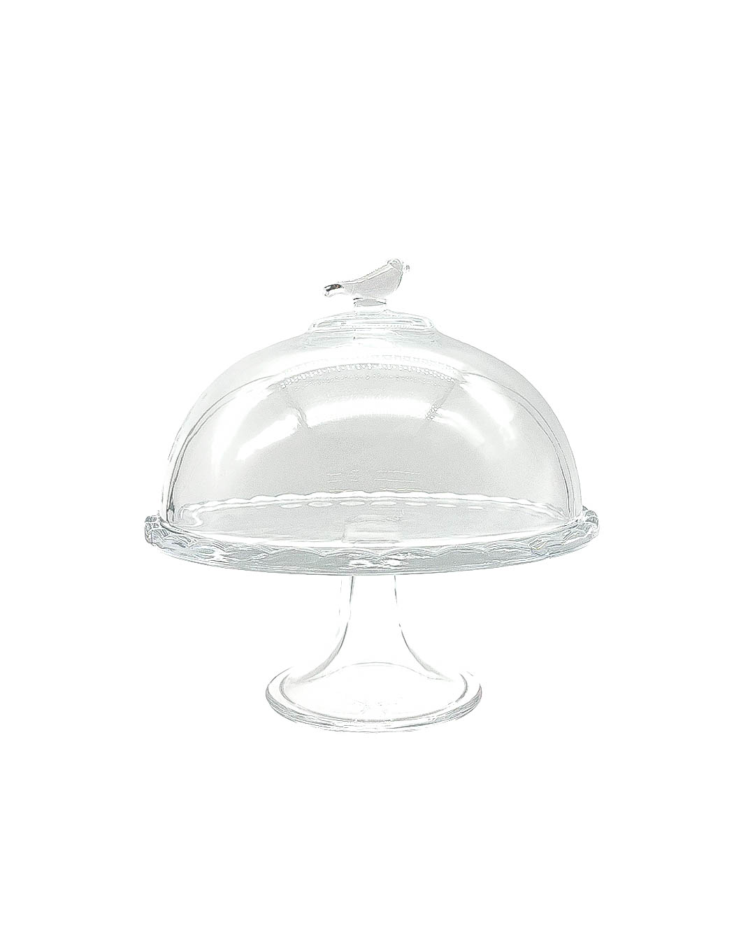 | Boleira com pé e tampa, linha Bird, em vidro. Ideal para servir e proteger bolos e tortas, mantendo a apresentação impecável. Dimensões: 29,5x30cm. |