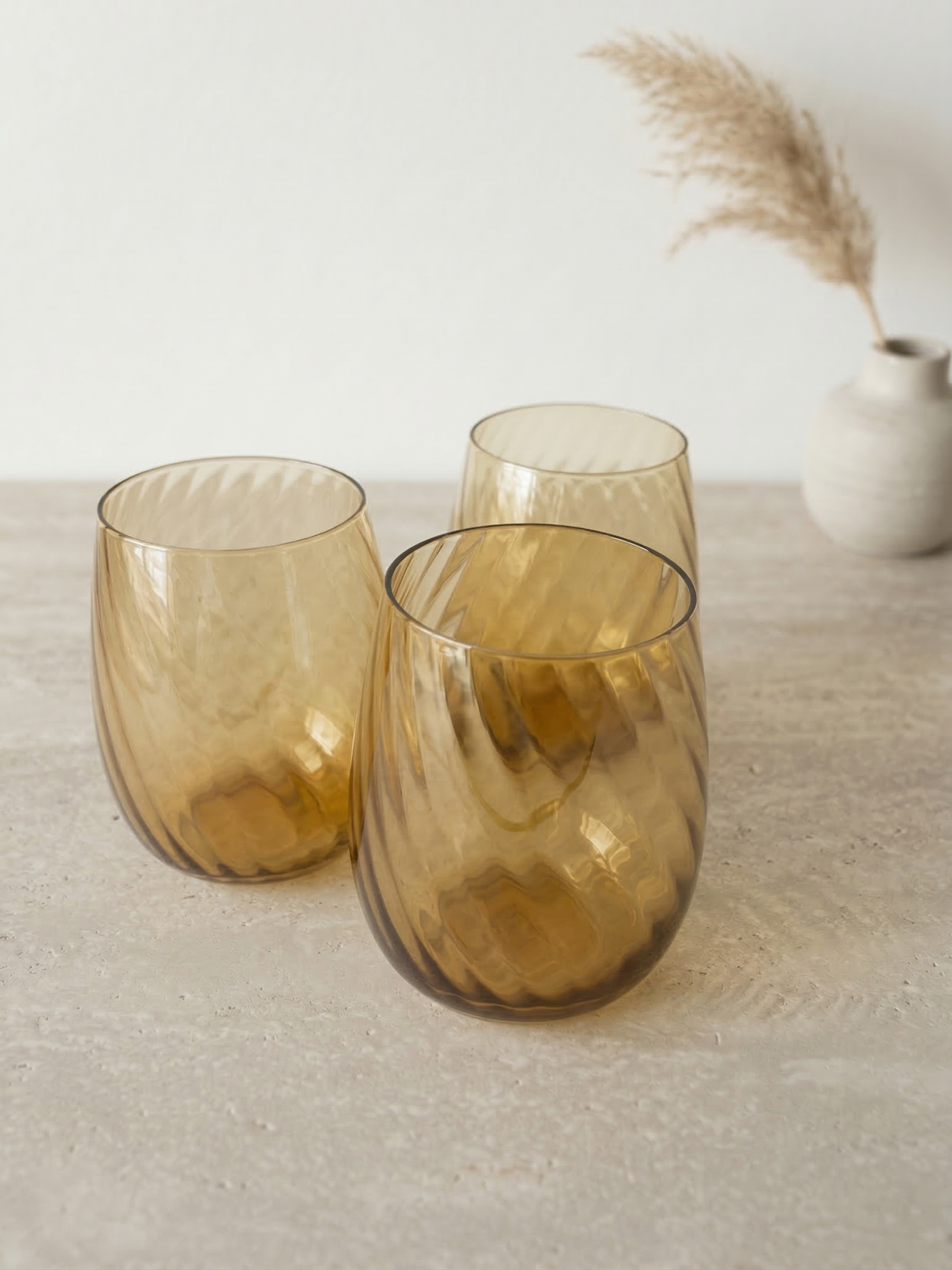 Feito em vidro com acabamento que valoriza a tonalidade âmbar e proporciona transparência com personalidade. Ideal para quem quer misturar funcionalidade e design em copos para uso doméstico ou eventos especiais.