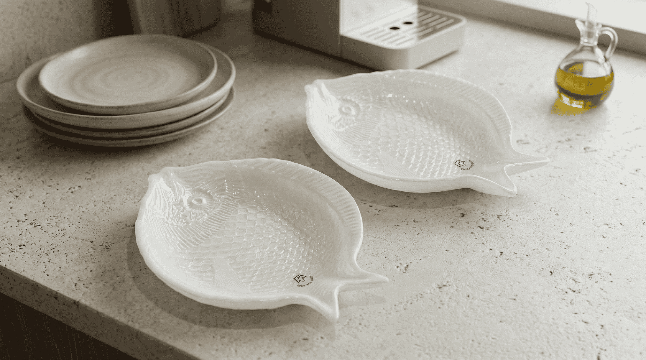 O design temático de peixe combina ludicidade e sofisticação, apresentando contornos precisos que tornam a peça um destaque visual imediato.
