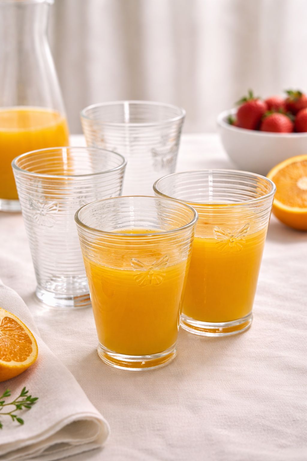 Este conjunto harmoniza perfeitamente com mesas postas que buscam um ar romântico e delicado. Por serem translúcidos, os copos podem ser combinados com louças coloridas ou estampadas sem carregar o visual. São excelentes para compor bandejas de servir em áreas externas ou salas de jantar, agregando um diferencial tátil e estético através de seus detalhes em relevo.