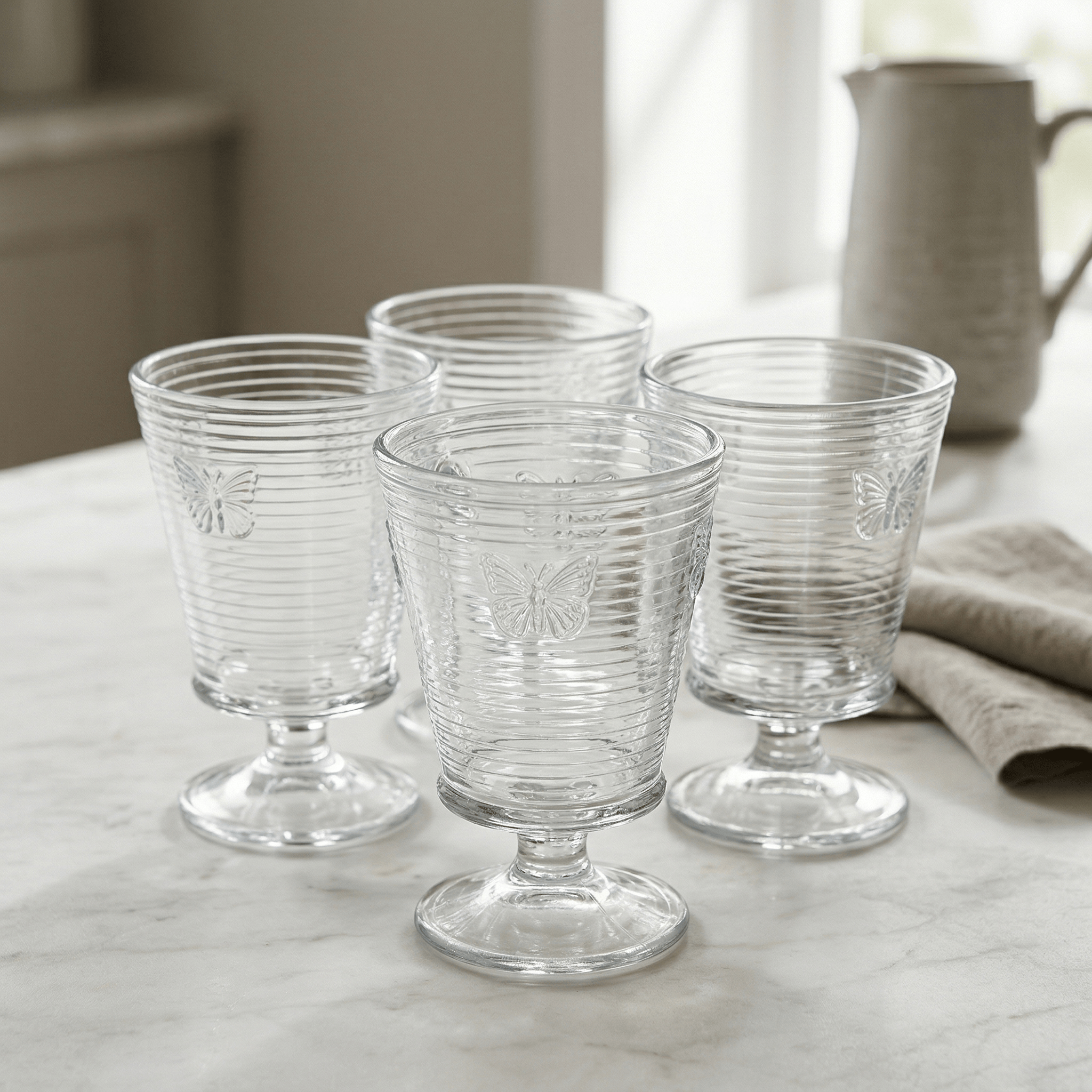 O Jogo de 4 Taças de Água Lines Butterfly é a escolha ideal para quem busca aliar frescor e elegância ao servir. Com uma generosa capacidade de 350ml, cada taça apresenta um design delicado com texturas que evocam leveza e movimento. O conjunto é projetado para transformar o ato de servir água ou sucos em um momento de puro requinte, equilibrando perfeitamente as dimensões de 30cm de largura (caixa) por 20cm de altura para compor sua mesa com distinção.