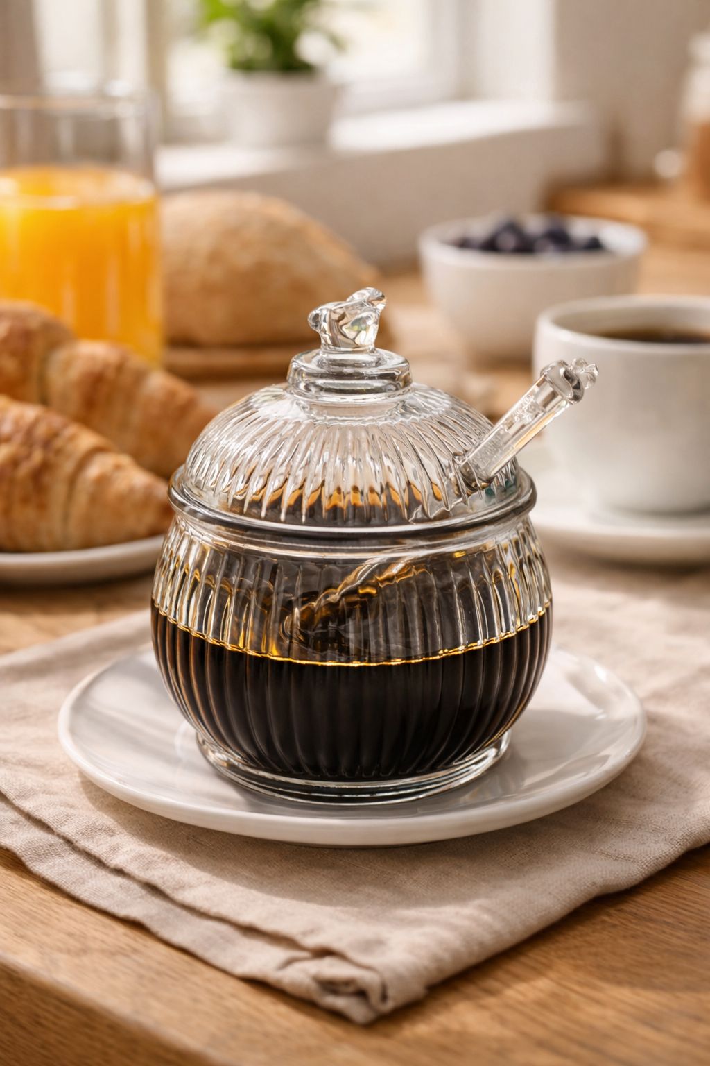 Ideal para compor o café da manhã ou o lanche da tarde, a Meleira Renaissance harmoniza com bandejas de madeira, louças de porcelana e outros itens em cristal. Por seu tamanho delicado, pode ser posicionada centralizada em mesas de brunch ou ser o destaque em um cantinho dedicado a chás e acompanhamentos, agregando elegância e funcionalidade à decoração.