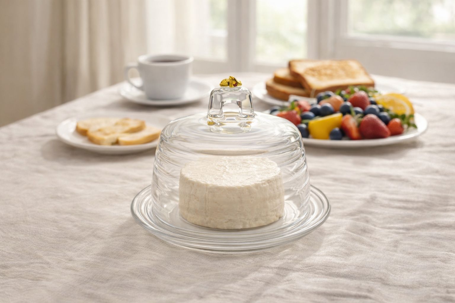Material de Alta Transparência: Confeccionada em cristal de excelente qualidade, a queijeira proporciona um brilho característico que valoriza o conteúdo e embeleza a mesa posta.