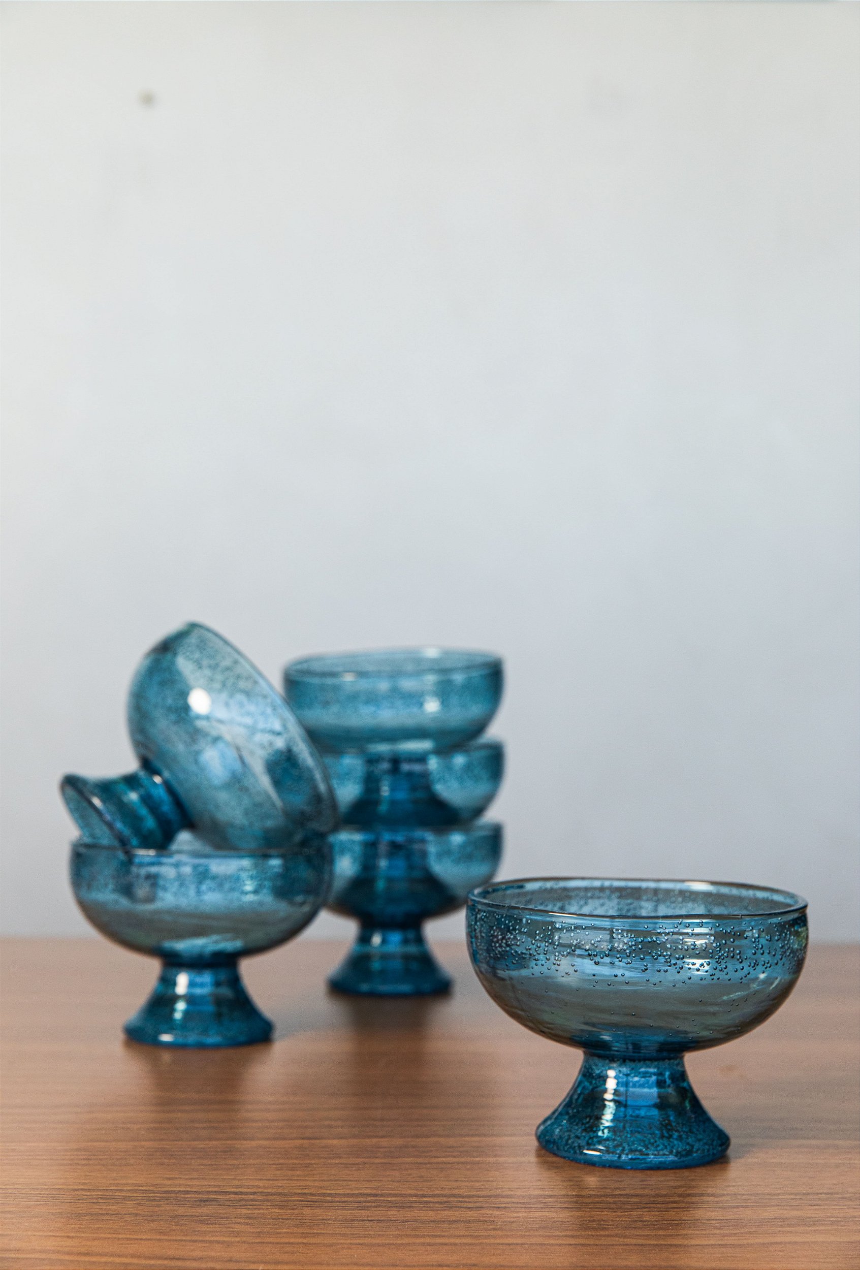 Harmonização Esta taça azul é perfeita para composições de mesa posta de verão, brunches ao ar livre ou festas na piscina. Harmoniza lindamente com jogos americanos de fibras naturais, louças brancas ou com estampas tropicais, e talheres de sobremesa em aço inox ou dourado, trazendo um ponto de cor vibrante e refrescante para a decoração.