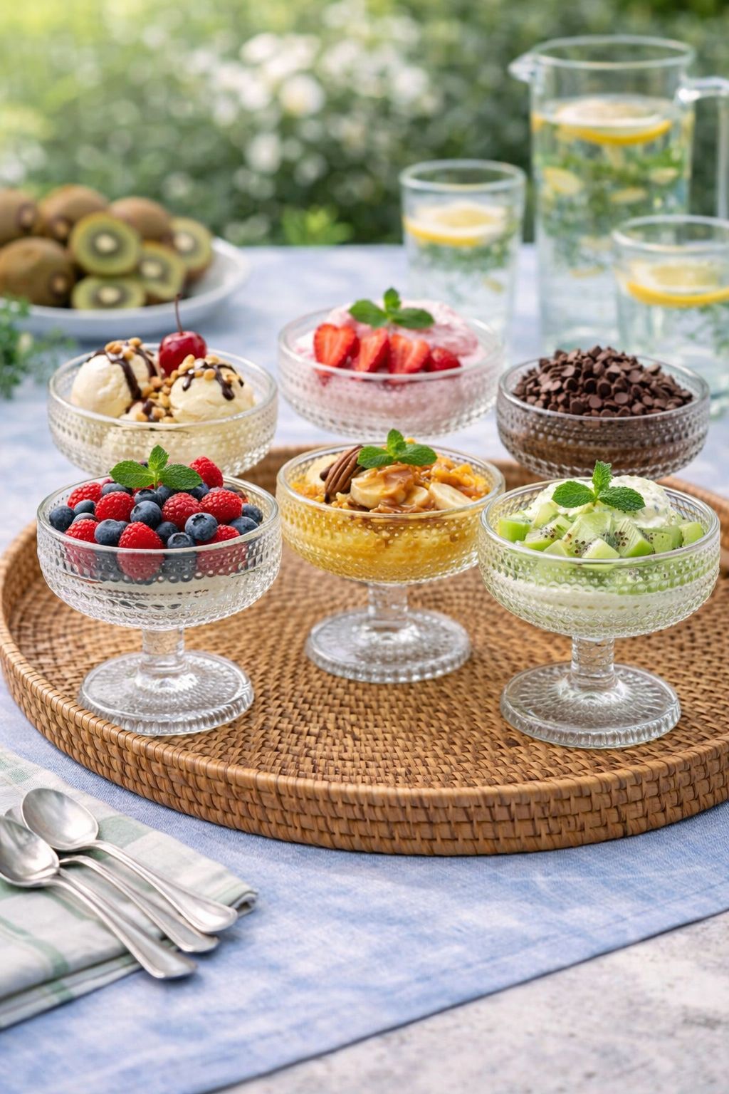 Harmonização Estas taças são extremamente versáteis e harmonizam perfeitamente com eventos formais ou recepções casuais. Experimente combiná-las com pratos de porcelana branca para um visual clássico, ou sobreponha-as a jogos americanos de linho para destacar sua textura de pérolas. São ideais para compor mesas de buffet de sobremesas ou para servir porções individuais com charme em jantares especiais.
